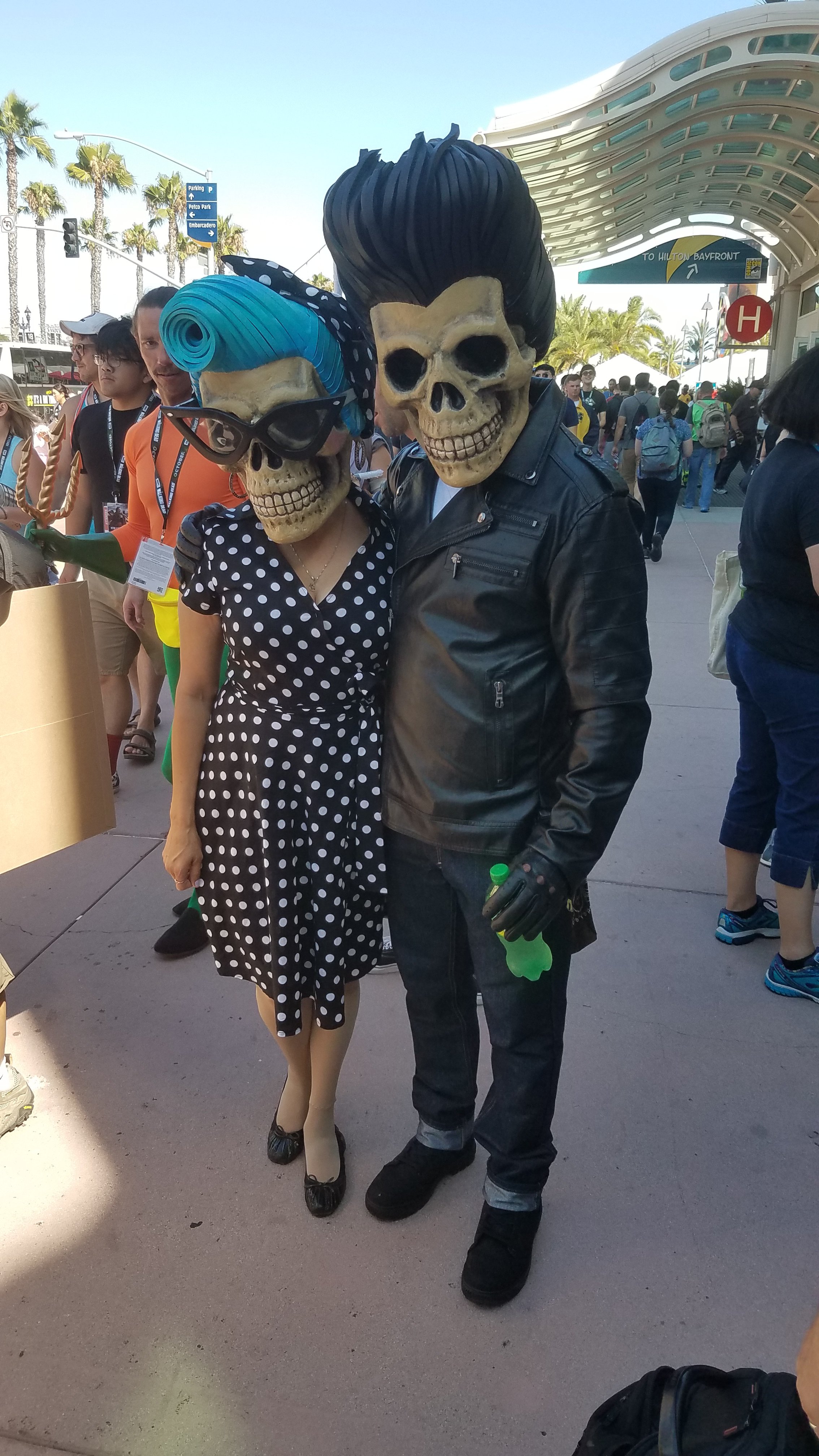The entire Gaslamp district of downtown San Diego was transformed into a giant celebration of what makes many of us so very happy. The first sight off the trolley was a car propped hood first in a pond to excite fans for the new series “Castle Rock”.