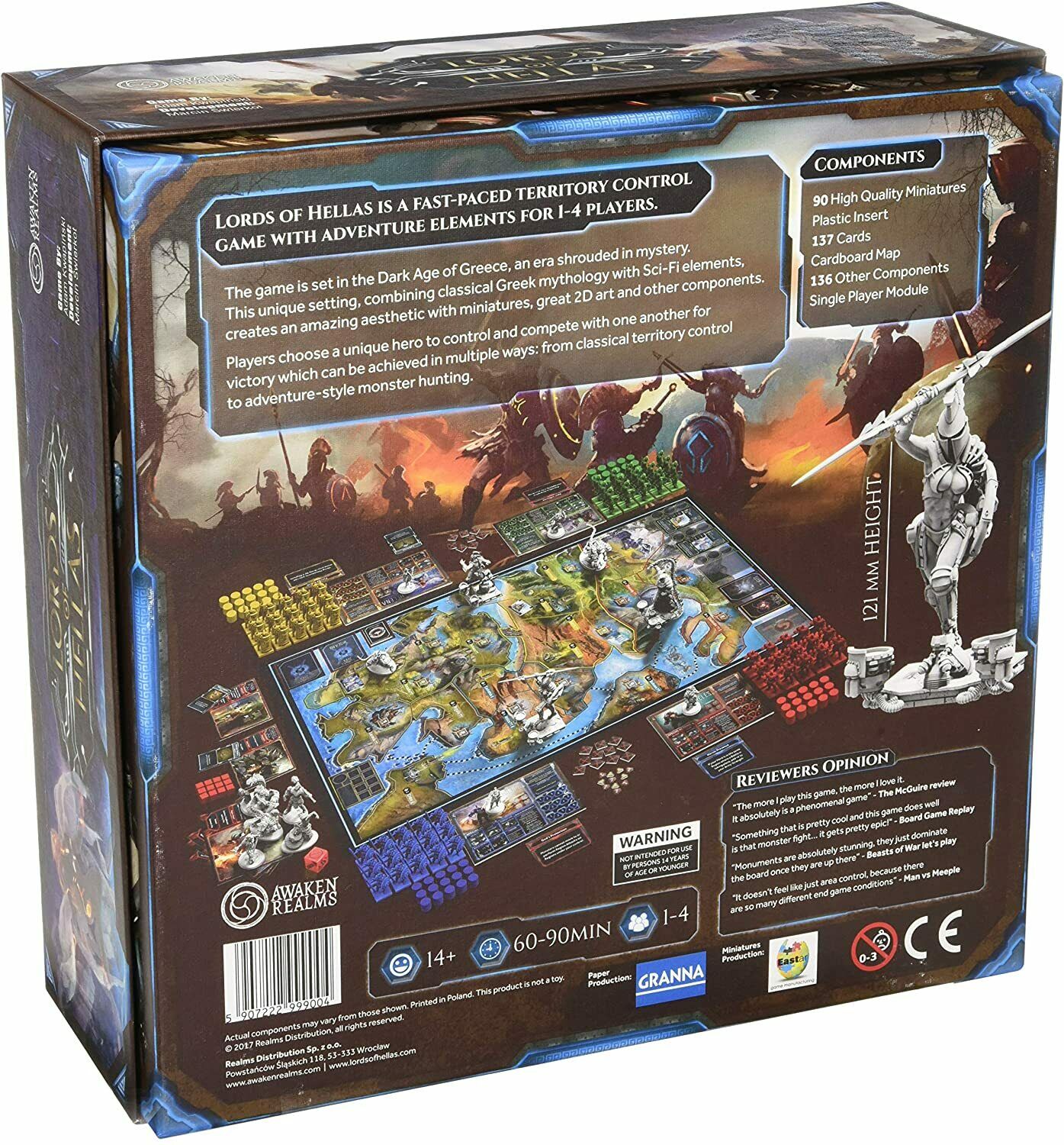 Another game that has many ways to win is Lords of Hellas. Similar to Kemet, each player has the same set of actions to use, it is deciding when to use them is where the game lives. Combat is determined with cards and the only use of dice is to determine the actions of the monsters roaming about. Players can win by controlling territory, defeating monsters, erecting temples, or building monuments to the Gods. The choice to victory is up to them.